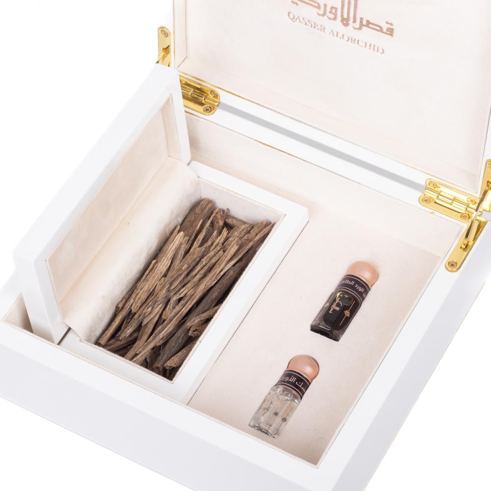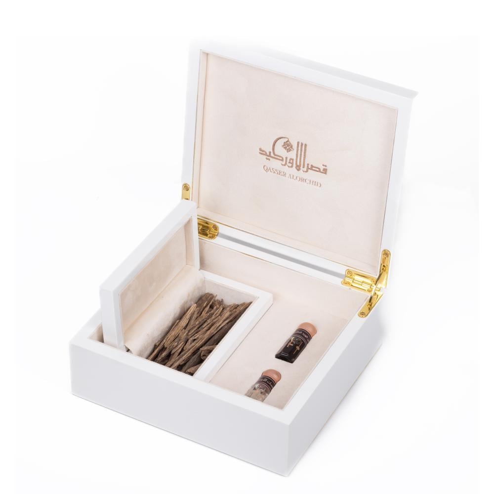 صندوق عطري يأتيكم بلونين أنيقين (الأبيض أو الأسود)، مصمم ليحمِّل بداخله منتجات عطرية مُختارة بعناية من أجود أنواع العود والدهون العطرية والمسك. كل قطعة في هذا البوكس مصممة لتمنحك تجربة عطرية متكاملة تضيف الفخامة على حضورك وتُحيطك بأطيب الروائح.
